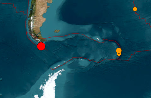 A major earthquake struck just south of Argentina in the Drake Passage, The main-shock reached a strong Magnitude 7.4 followed minutes later by another quake registered to M7.1 by the EMSC (European Earthquake reporting agency), both quakes were registered to be at 10km Depth. No tsunami has been reported from these events. USGS only reports just one event and at the time of this article two shakes are definitely shown in the data however the second report maybe the secondary wave of the first giving a double reading and most likely the second report will be removed shortly by all agencies.