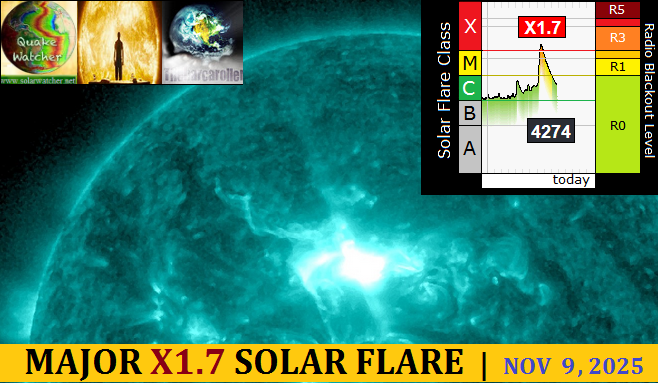 A Major X1.8 Solar Flare was just released around Earth facing Active Region 14274 at 07:35 this morning. A Coronal Mass Ejection is not yet visible on solar feed but any coronal mass will have an earth directed component and will become geo-effective in 2-3 days
